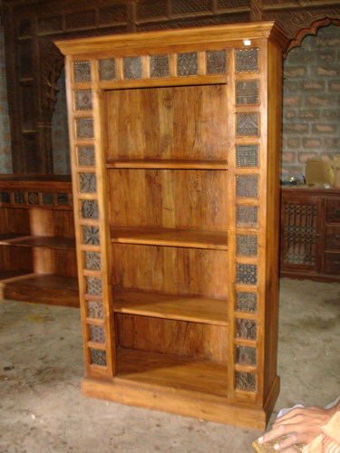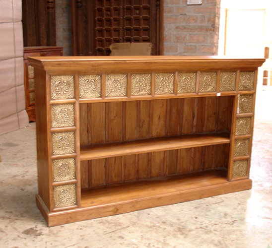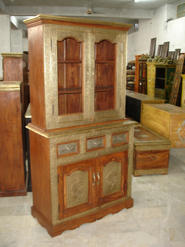 Rack-corner/wardrobe teakwood furniture, with brass plates on the borders.