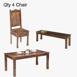 Side Jali Dining Table + Side Jali Chair 4 Pc + Hunter Bench 4 Feet