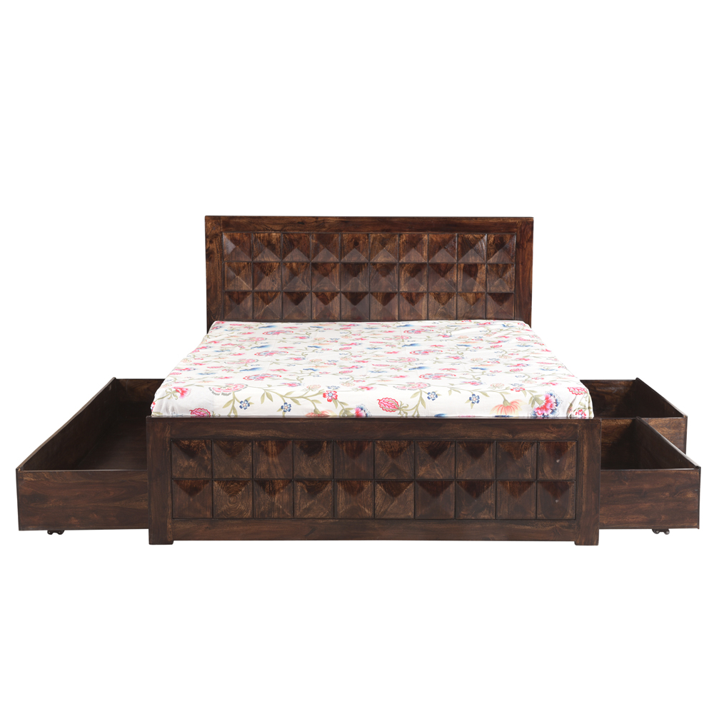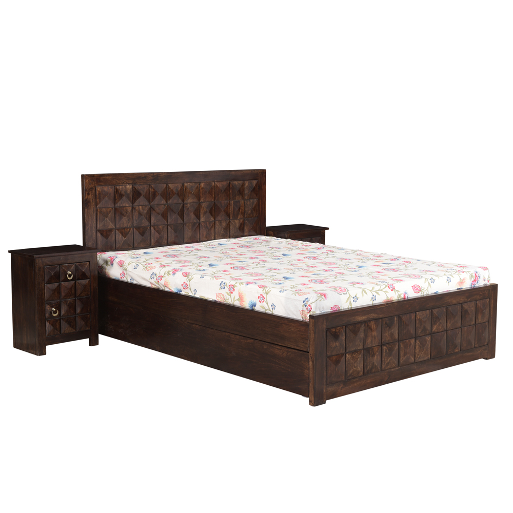 The beautiful finish of the bed along with the jali block headboard design gives the bed its unique style. The solid wood bed is comfortable to sleep on, and the plywood mattress support offers good support for the user. The beautiful finish of the bed along with the jali block headboard design gives the bed its unique style. The solid wood bed is comfortable to sleep on, and the plywood mattress support offers good support for the user. Online Sheesham Wood, Rosewood, Hardwood, furniture store now available at Bangalore, Chennai, Hyderbad, Mangalore, Kengeri, Bhopal, Hosur, Tumakuru, Hoskote, Rajanukunte Ujjain, Kolhapur, Mumbai, Satara, Lonavala, Indore, Pithampur, Mhow, Dhar, Pune, Pimpri, Cinchwad, Lavasa, Kondhwa, Goa.Karad, Ahmednagar, Nashik, Delhi Ncr, Gurgaon, Greater Noida, Noida, Ahmedabad, Vadodara, Surat, Jaipur, Udaipur, Kota.