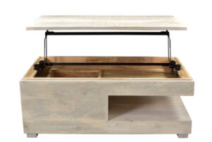 MANGO WOOD Furniture – WOOD? LIFT COFFEE TABLE | Houston lift-top coffee table effortlessly blends minimalism with rustic industrial style. Natural looking wood finish infuses Natural Living Furniture for Living Room . Contrasting dark raw steel hue of the metal legs elevates the look. Tabletop with storage underneath is easy to lift with finger slots.Made of mango wood and metal | Lift-top design with storage underneath Assembly required Check range is Natural Living brands Premium quality product made by experienced craftsmen | Manufactured in Jodhpur one them most popular and Unique range of Jodhpur Furniture | Please visit our nearest Furniture store Natural Living Furniture store Pune| Natural Living Furniture store Bangalore |Natural Living Furniture Store Indore | Natural Living Furniture Store Jaipur | Best Online store for Hardwood Furniture Table is strong and well made. Coffee? table has classic design of the table is made more prominent by the gorgeous finish. Industrial Coffee table with in Pune Bangalore Indore