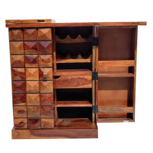 Bar cabinet elegantly designed from Sheesham wood, and finished in a gorgeous colour, this bar cabinet would bring style and flair to your home.The cabinet has numerous wine bottle holders on the insides of the door and in the centre of the cabinet, and several glass holders. Online Sheesham Wood, Rosewood, Hardwood, furniture store now available at Bangalore, Chennai, Hyderbad, Mangalore, Kengeri, Bhopal, Hosur, Tumakuru, Hoskote, Rajanukunte Ujjain, Kolhapur, Mumbai, Satara, Lonavala, Indore, Pithampur, Mhow, Dhar, Pune, Pimpri, Cinchwad, Lavasa, Kondhwa, Goa.Karad, Ahmednagar, Nashik, Delhi Ncr, Gurgaon, Greater Noida, Noida, Ahmedabad, Vadodara, Surat, Jaipur, Udaipur, Kota.