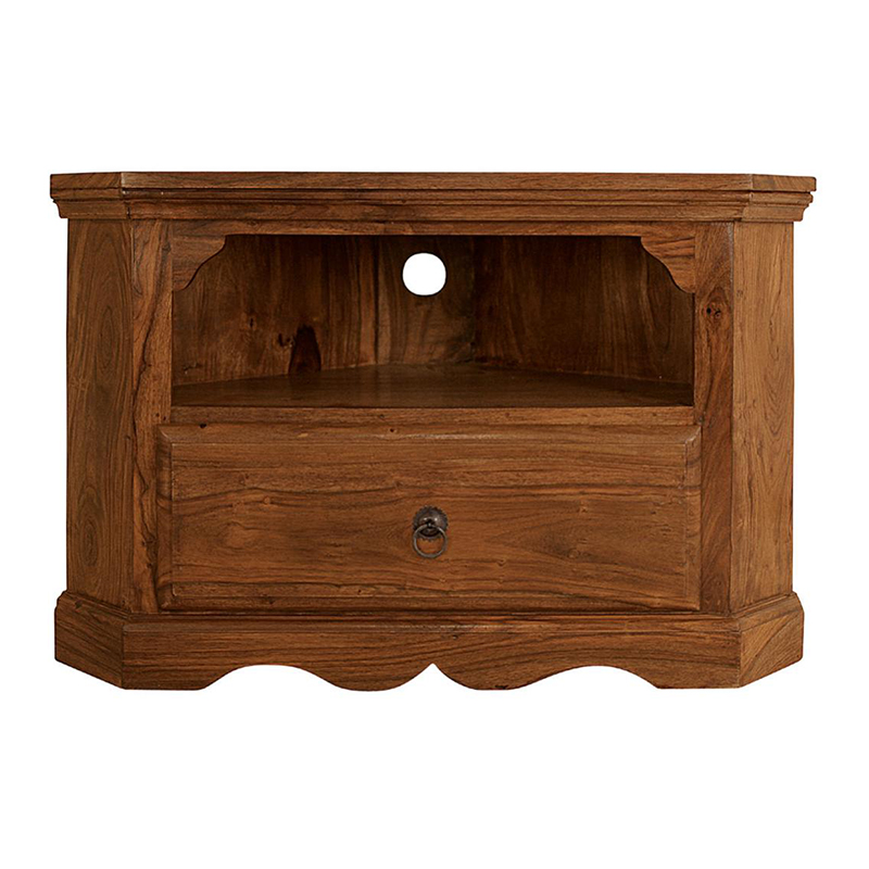 The Thakat version is also designed slightly differently to sit with its point right back into the very corner of your room, using every last bit of available space. Crafted and hand carved in solid Sheesham hardwood, this unit is beautifully finished with smooth hand carving, an essential deep drawer