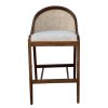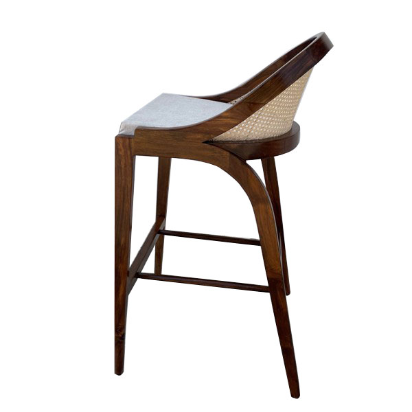 Bar Stool with cane back rest, . Sheesham made wooden chair for cafe, restaurant and bar. This wooden chair is solid and ergonomically sound. The chair’s slatted design gives it a classic yet unique look. Chair offers brilliant comfort to the user, and its elegant design and finish adds style to your decor.