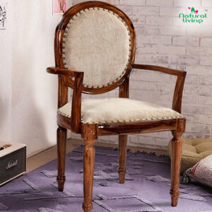 Round back small carving chair, Best chair for dining and restaurant. This chair of sheeshamwood and fabric. Spacious seating and great comfort.